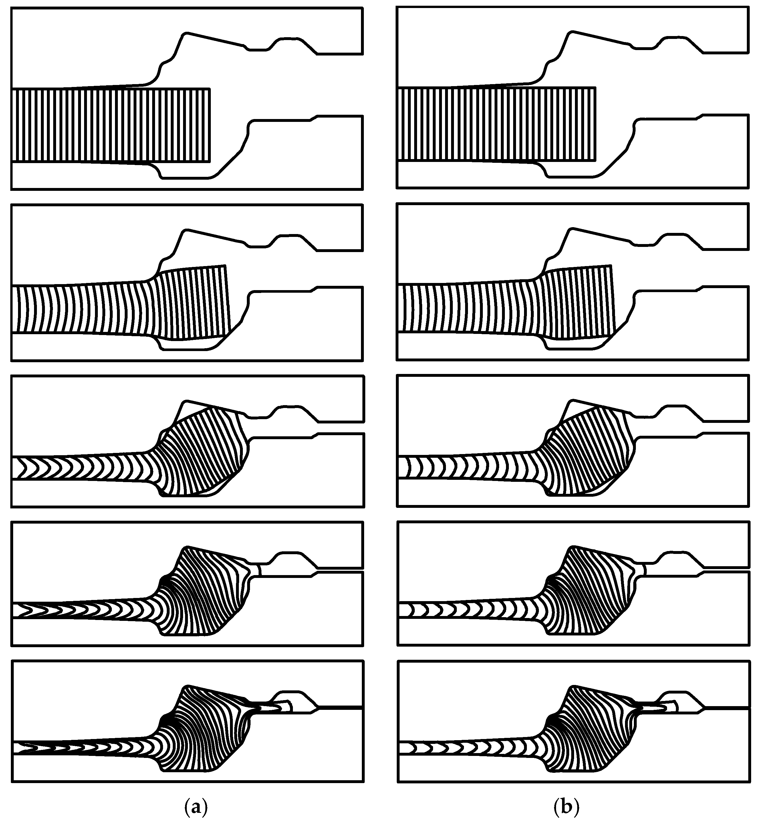 - Nagpal, V.; Lahoti, G.D.; Altan, T. A numerical method for simultaneous prediction of metal flow and temperatures in upset forging of rings. J. Eng. Ind. 1978, 100, 413–420. [Google Scholar] [CrossRef]