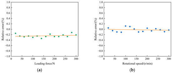 Relative error: (a) Loading force; (b) Rotational speed.