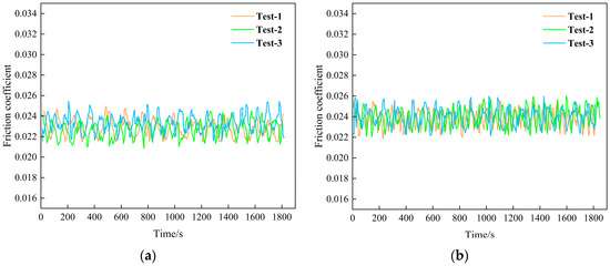 Friction coefficient curves: (a) Sample A; (b) Sample B.