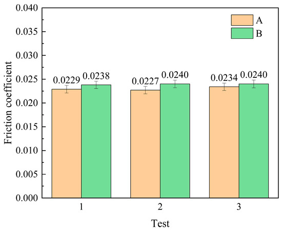 Statistical analysis of the two sets of test data, as shown in Figure 12, reveals that the average friction coefficient for the three clamping tests of Sample A was 0.02300 with a standard deviation of 0.000361, while that for Sample B was 0.02393 with a standard deviation of 0.000116. The standard deviations for both tests were below 0.001, indicating excellent system stability and repeatability, thereby meeting all operational requirements.