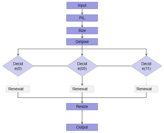 The image processing model is mainly used to process the image of bearing wear surface morphology, and its theoretical principle is based on the PIL module in python 2.0 language. In this study, the image processing functions of the PIL module primarily employed include image opening, saving, and display; mode conversion; channel splitting and merging; cropping, rotation, and resizing; pixel-level manipulations; and conversion to NumPy arrays. The detailed workflow is shown in Figure 6.