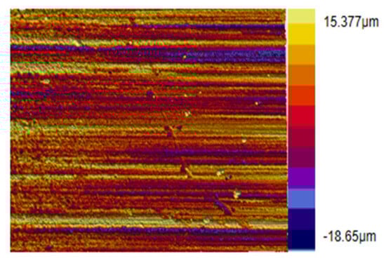 The self-lubricating spherical plain bearings was cut by wire cutting equipment after the test as shown in Figure 8. The Bruker Contour GT-K white light interferometer (Bruker corporation, Bremen, Germany) was used to collect the surface topography of the worn bearing slices. Totally 1332 images of the worn surface topography under various working conditions were taken and optimized by Vision 64. The surface topography loaded 100 N is shown in Figure 9 and Figure 10. The wear surface topography under the same working conditions is different, as shown in Figure 10. Therefore, it is necessary to unify the height colors of the wear surface topography image of the self-lubricating spherical plain bearing.
