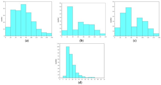 A total of 1332 images of worn surface morphology were collected under four working conditions. The maximum and minimum height values of each image were analyzed to obtain the corresponding height differences (Figure 11). Based on these values, the images under each condition were classified into three categories: slight wear, moderate wear, and severe wear. Letting A represent the maximum height difference and B the minimum, the recalculated maximum and minimum values are defined by Equations (12) and (13).
