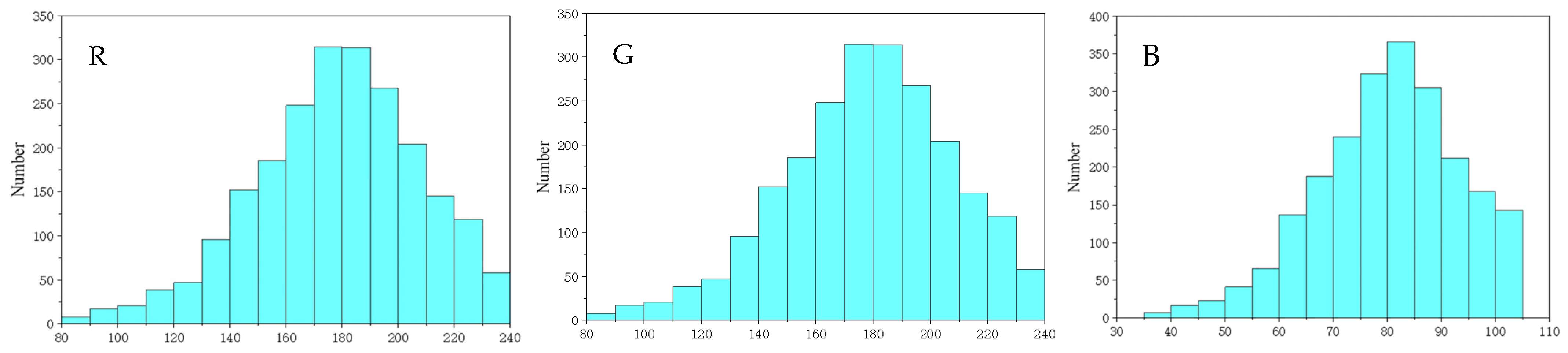 | 1 | ![]() | 100 ≤ R ≤ 255, 100 ≤ G ≤ 255, 0 ≤ B ≤ 155 | 7 | ![]() | 65 ≤ R ≤ 156, 0 ≤ G ≤ 0, 29 ≤ B ≤ 57 |