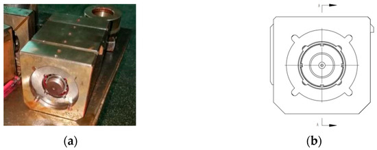 The experimental data are collected in Hangzhou Bearing Test and Research Center. This is a strength lifetime test on the vibration performance of rolling bearings. The test machine model is an ABLT-1A. This machine mainly consists of a test head seat, test head, transmission system, loading system, lubrication system, and computer control system. The physical drawings of the testing machine and test head are shown in Figure 1 and Figure 2a–c [22].