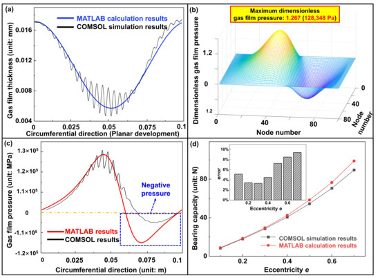In accordance with the aforementioned theoretical model, this section verifies it to ensure accuracy. To verify the correctness of the theoretical calculation model for EFGBs established in this paper, the calculation parameters in Ref. [33] are implemented in the present theoretical model. The bearing parameters are in Table 1. The calculation results are benchmarked against reference data, as exhibited in Figure 5.
