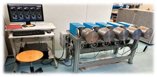 In the so-called FE9 test, the test bearings are loaded by means of axially preloaded disk springs and driven by a frequency-controlled three-phase asynchronous motor. In addition, the test heads can be heated to temperatures of up to 200 °C via heating elements (Figure 8). Each test head is individually monitored for temperature and friction torque development and can be controlled separately.