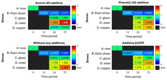 These findings highlight that additive performance is strongly dependent on the grease formulation and is often case-specific, making generalized conclusions difficult. To better illustrate and analyze the extensive results, various visualization and statistical evaluation methods were applied at the end of the project. The only consistent observation is the significantly higher performance of PAO-based greases compared with mineral oil-based ones. In all other respects, performance was highly dependent on composition and operating conditions.