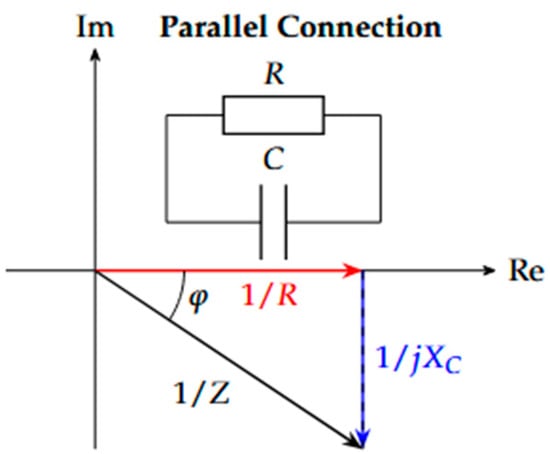 The resulting impedance can be displayed as a complex number. In such a circuit, the real part of the imaginary number corresponds to the resistive behavior and the imaginary part to the impedance caused by the capacitance in the circuit. Consequently, the phase