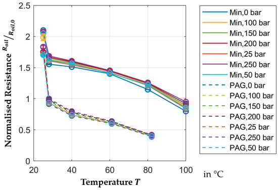 Sedrez and Barbosa [10] investigated the electric properties of two refrigerants as well as a reference polyol ester lubricating oil (ISO VG 10). They only found a small temperature dependence of the lubricating oil’s permittivity. However, they found the permittivity of the lubricant to be 3.5, which shows a significant variation in the permittivity between different publications. Their measurements were taken at a frequency of 1 kHz.
