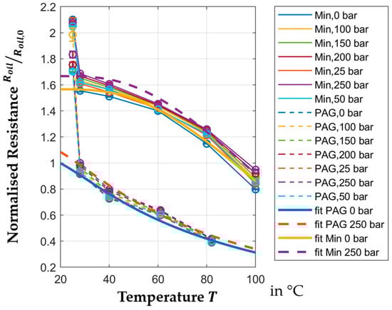 Sun et al. [22] investigated the temperature dependence of the permittivity and conductivity of an automatic transmission fluid at 50 Hz. They found the permittivity to drop linearly from 2.28 to 2.13 between 30 °C and 100 °C. However, the resistivity showed a nonlinear dependence while dropping from