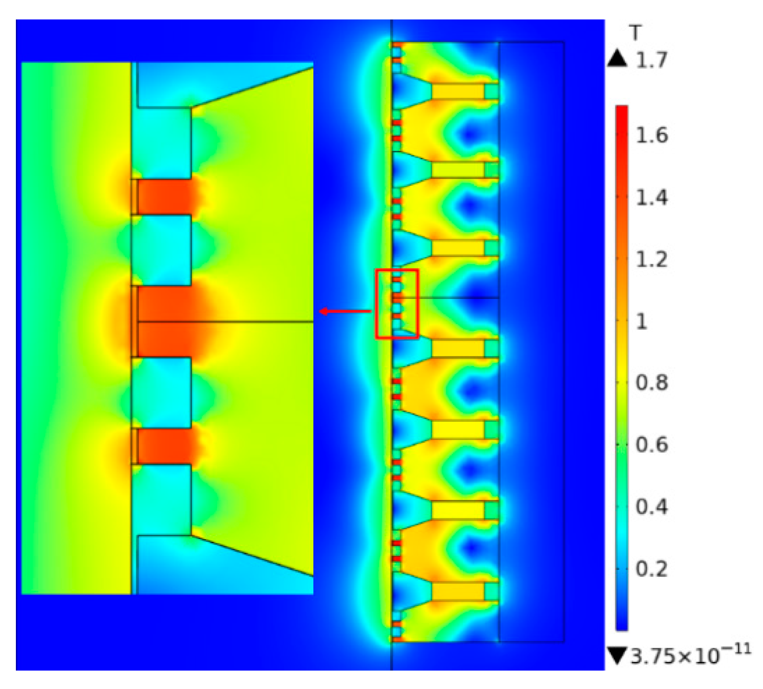 4.1. Magnetic Field Finite Element Simulation Results
