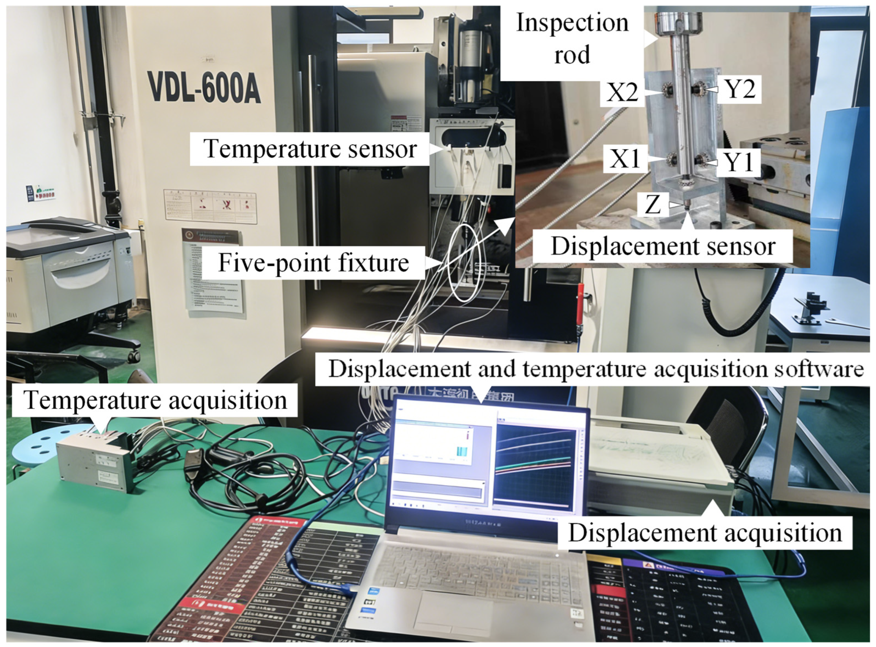 The spindle heat transfer model includes numerous material property parameters, many of which can be obtained via measurement or calculation. For instance, the relative velocities of the frictional surfaces (v1 for bearings A, B; v2 for pulley C), the diameter of the heat-conducting shaft segments (d3), and the axial distances from pulley C to bearings A, B (L1, L2) can be directly obtained. However, certain parameters—such as the friction coefficients (μ1 for bearings A, B; μ2 for pulley C) and the applied loads on bearings A, B, and pulley C (p1, p2, p3)—are often prone to minor deviations from actual values when obtained via literature research or data lookup. To obtain more precise parameter values, it is customary to use temperature data at specific spindle positions as input, then apply intelligent algorithms to iteratively adjust these parameters and identify values that best match the spindle’s actual operating conditions.