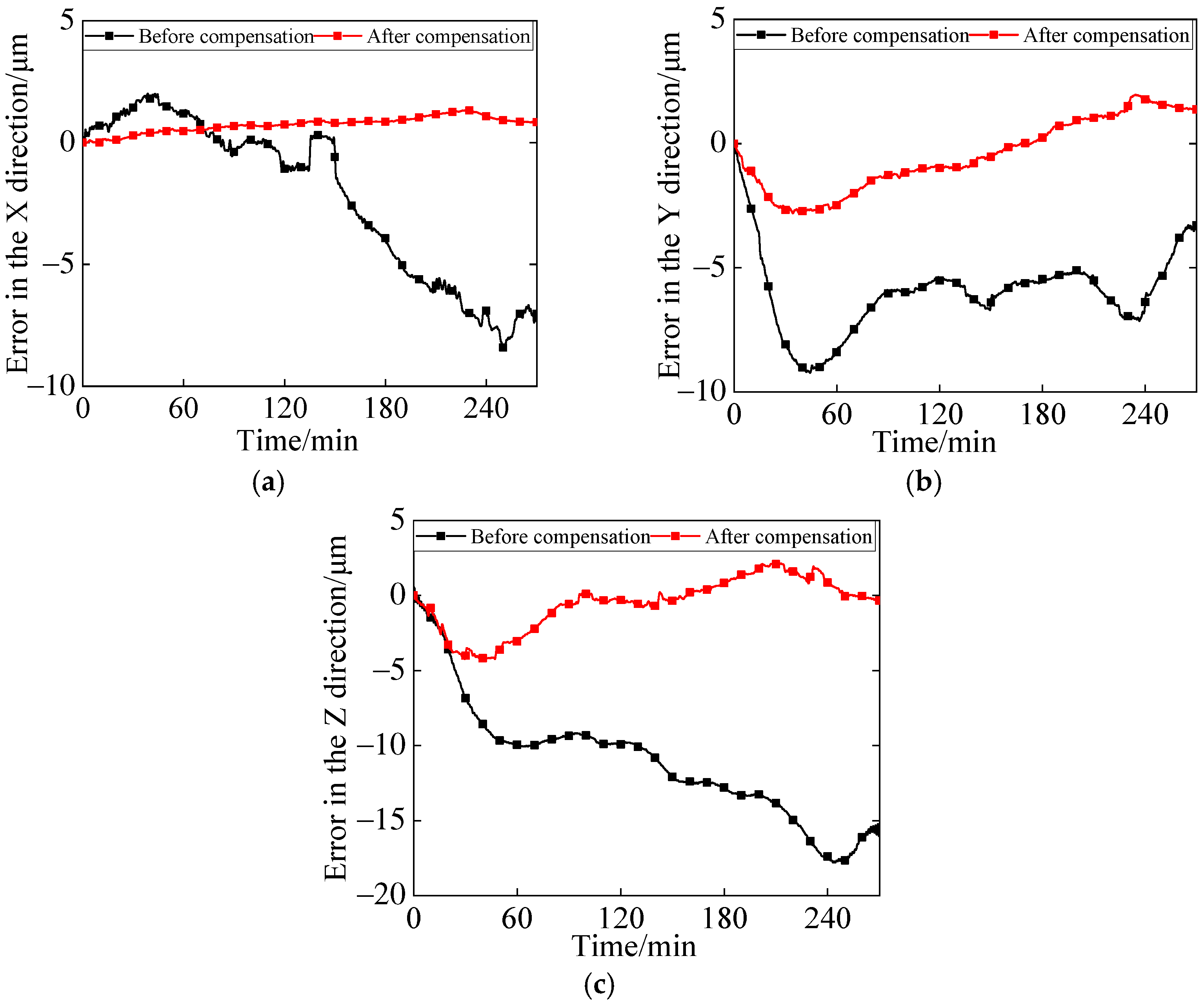 Equation (12) presents the spindle temperature field model, which was established by substituting Equations (8)–(10) into Equation (11):