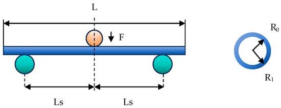 To investigate the impact of vascular channel curvature on catheter deformation force, a classical three-point bending test was employed in the current experiment. This test examines the relationship between the catheter bending radius and the deformation force (Fw) under static conditions, as illustrated in Figure 1. The interventional catheter used in this study is a guiding catheter (Cordis AL1, Johnson & Johnson, Miami, FL, USA). It is primarily used to introduce interventional or diagnostic devices into the coronary arteries or peripheral vascular system; therefore, it was selected for analyzing contact with blood vessels in this study. The relevant parameters of the interventional catheter are shown in Table 1.