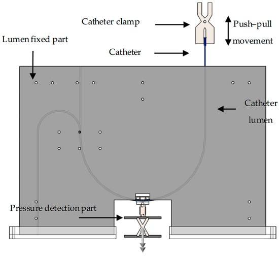 During vascular interventional surgery, after the catheter enters a blood vessel, the doctor must control its movement due to the complexity of the vessel. The push–pull force, applied to advance or retract the catheter, is monitored to assess its real-time state. Contact between the catheter and vessel wall causes a push–pull force, acting as resistance [11,12,13,14,15,16]. Excessive force may cause mechanical injury, including damage to the inner membrane (intima) or middle layer (media), or rupture of the vessel wall. Such injuries can impact surgical safety and have attracted close attention from medical staff and researchers [17,18].