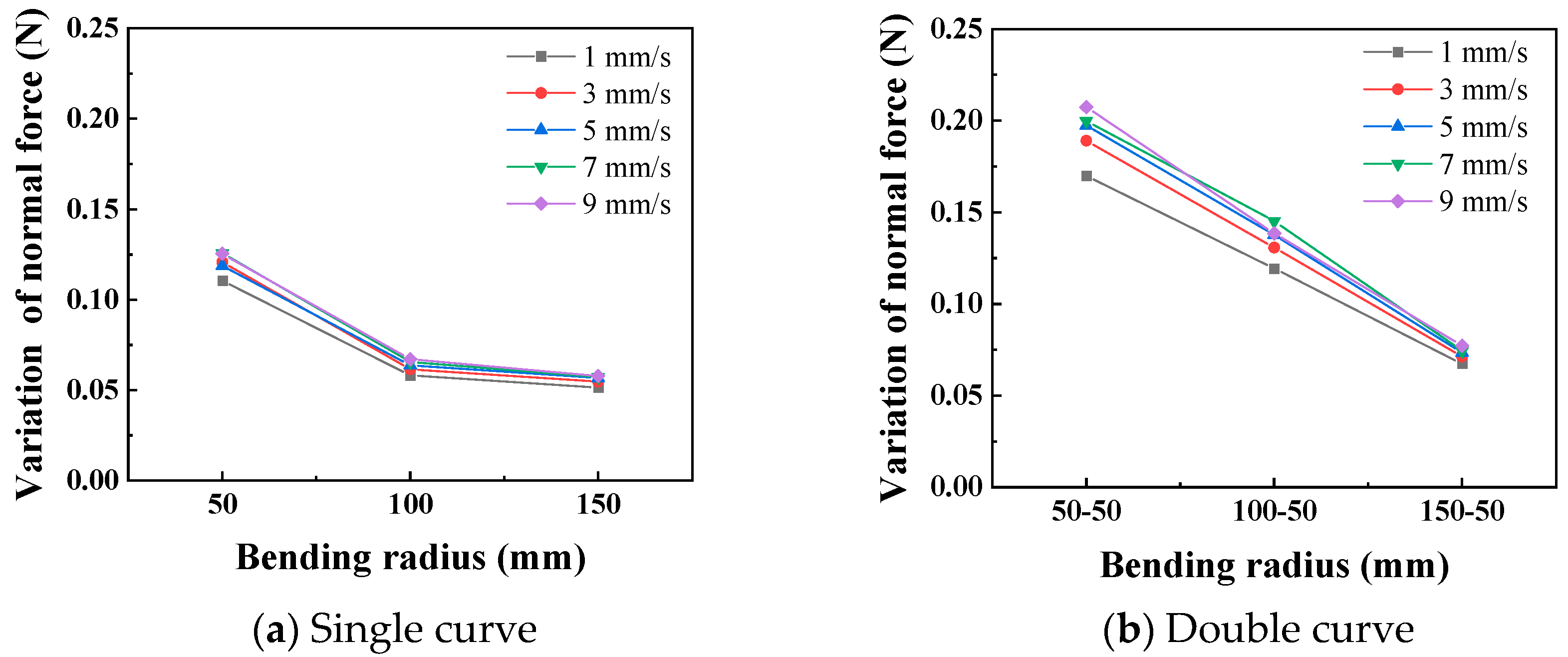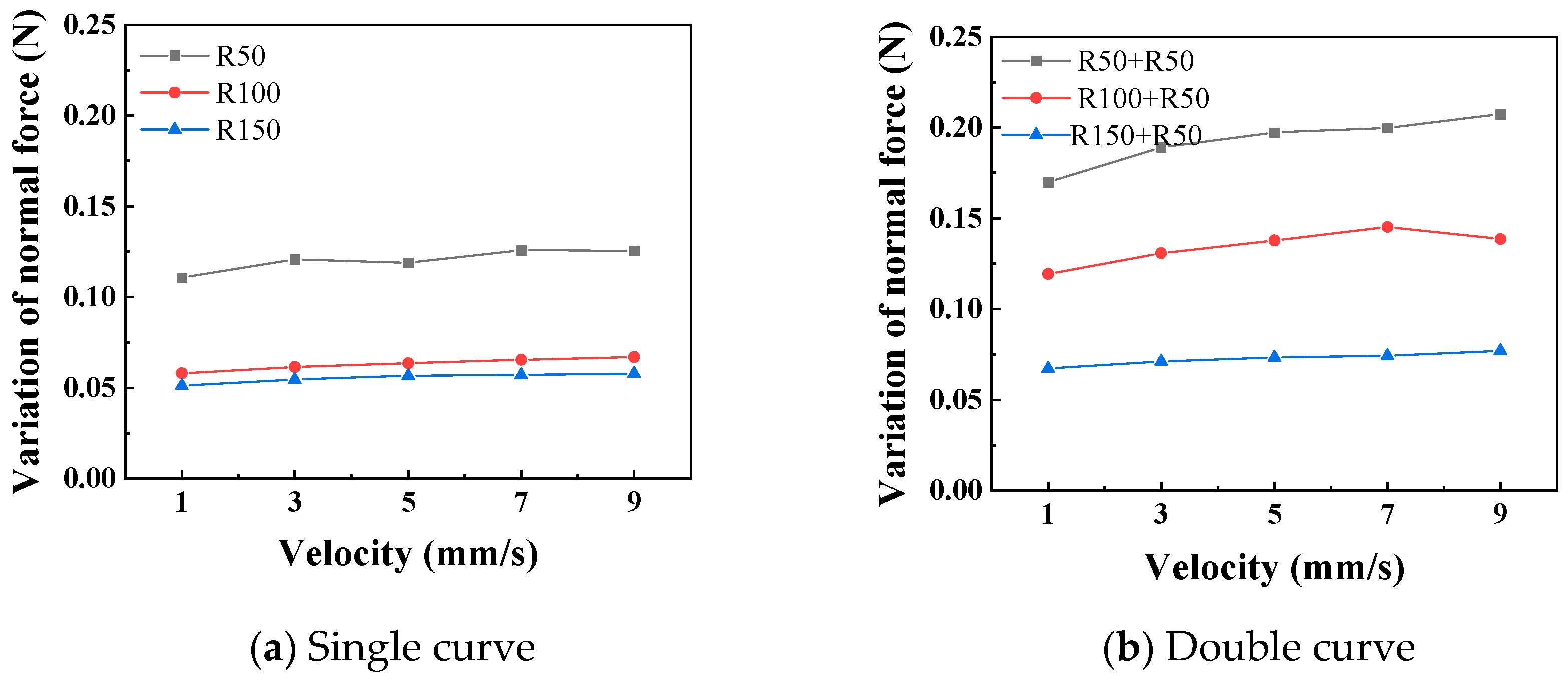 | Group | Curve 1 Radius (mm) | Curve 2 Radius (mm) | Speed (mm/s) | Materials |