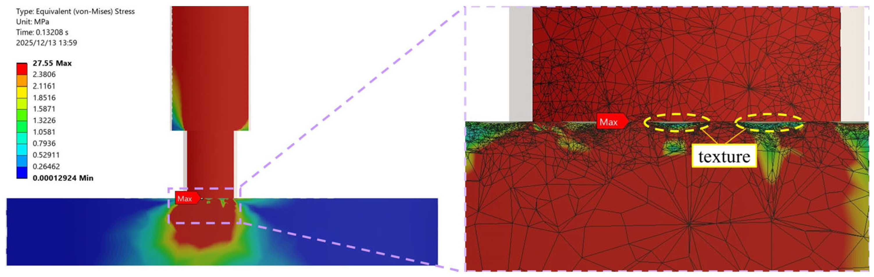 Figure 17. Stress distribution in textured surfaces.