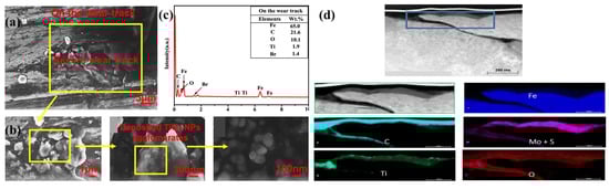 - Zhang, Y.; He, X.; Cao, M.; Shen, X.; Yang, Y.; Yi, J.; Guan, J.; Shen, J.; Xi, M.; Zhang, Y.; et al. Tribological and thermo-mechanical properties of TiO2 nanodot-decorated Ti3C2/epoxy nanocomposites. Materials 2021, 14, 2509. [Google Scholar] [CrossRef] [PubMed]