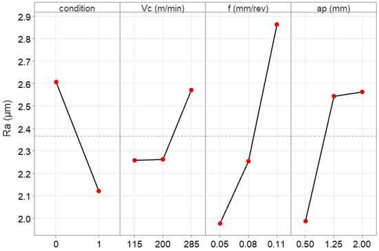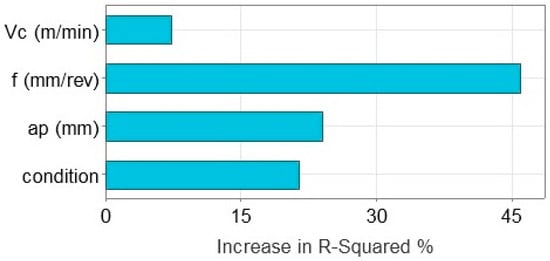 - Feed was determined to be the most significant predictor, followed by the depth of cut and the condition. Cutting speed had the least significant effect from the four predictors. However, it cannot be considered negligible.