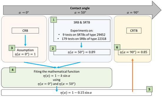 Finally, the geometrical lifetime reduction factor for thrust roller bearings is given in Equation (10) (see STEP 5 in Figure 1).