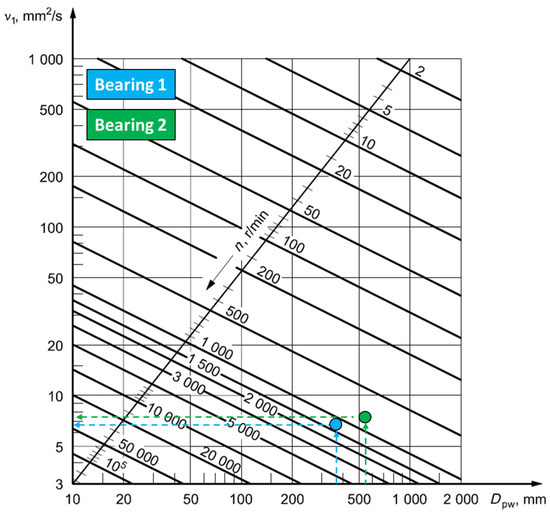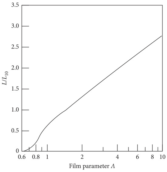In Equation (20), is the viscosity ratio from ISO 281 [6] and is defined in Equation (21).