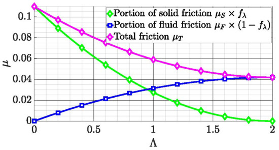 is a load sharing factor used to weigh the influence of both portions of fluid and solid friction. It depends on the specific film thickness can be calculated using Equation (19) from [22], which is a suitable formulation for line contact.