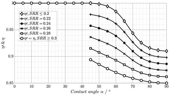 When the contact angle tends toward zero, i.e., in the case of a radial roller bearing, the SRR becomes zero. For a CRTB with contact angle , the definition of matches the definition of the SRR, i.e., . This result is verified in [19].