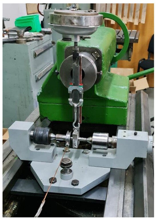 Image of the experimental stand used for testing. For the experimental tests of lubricated friction, a grease of the MOL Liton LTA 3EP type (made by MOL Lubricants, Budapest, Hungary) was used. According to the manufacturer’s instructions, this grease is a multipurpose lubricating grease containing a highly refined mineral oil and lithium 12-hydroxystearate thickener. During the manufacturing process, additives capable of reducing wear, inhibiting oxidation and corrosion, as well as extreme pressure additives that contribute to improving the performance of the grease, were introduced into the lubricant.