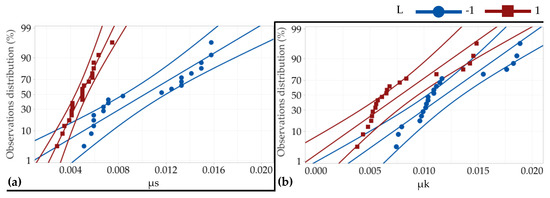 Normal probability plot of the response variables for (a) static friction coefficient µs; (b) kinetic friction coefficient µk.