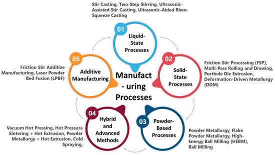 - Orhadahwe, T.A.; Ajide, O.O.; Adeleke, A.A.; Ikubanni, P.P. A Review on Primary Synthesis and Secondary Treatment of Aluminium Matrix Composites. Arab. J. Basic Appl. Sci. 2020, 27, 389–405. [Google Scholar] [CrossRef]
