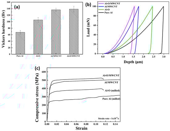 | 2024 | Al-O + ZnO | MWCNT | - | Mechanical milling + hot pressing | Al-O/MWCNT hardness 138.68 VHN, elastic modulus 87.49 GPa, compressive strength 470 MPa | [129] |