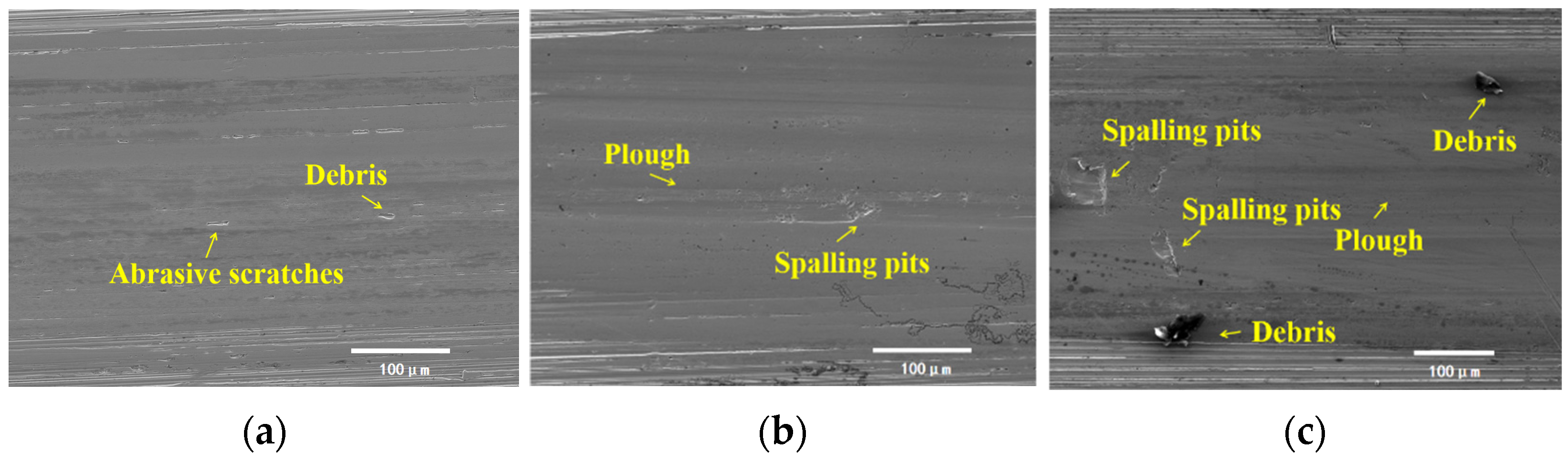 4.2. Wear Mechanism Under Rock Dust Contamination