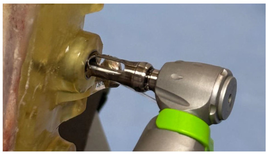 The drills and trephines were operated using a surgical handpiece (WS-75 L, WW&H Dentalwerk GmbH, Bürmoos, Austria) connected to an implant motor (SI-1023 Implantmed, W&H Dentalwerk GmbH, Bürmoos, Austria). The implant motor supplied continuous external irrigation with saline during the procedures (Figure 2).