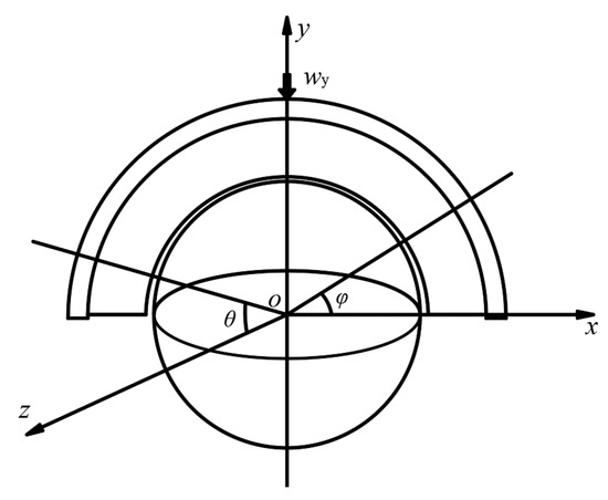 where p represents the hydrodynamic pressure distribution; h denotes the lubricant film thickness; Rc corresponds to the radius of the UHMWPE acetabular cup; t indicates the temporal variable; η signifies the viscosity of the periprosthetic synovial fluid; and φ and θ represent the spherical coordinate parameters, as defined in Figure 1.
