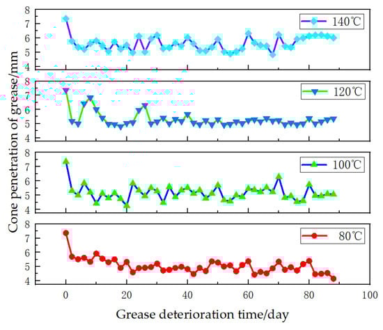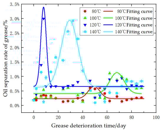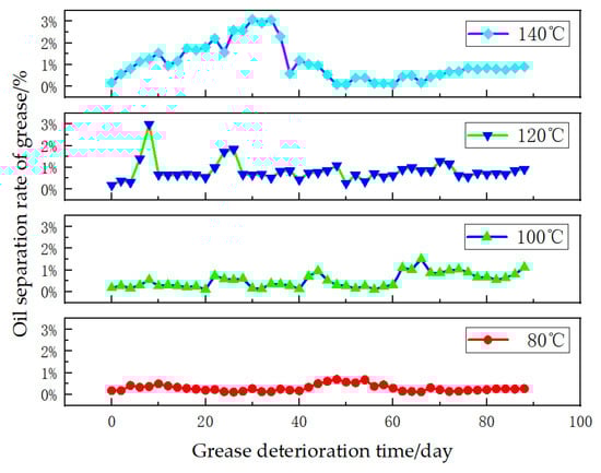 3.3. Variation Rule of Oil Separation Rate of Grease