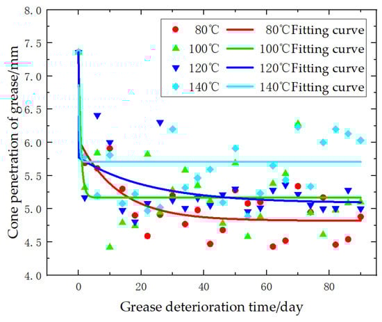 | τ/Day | Cone Penetration of Grease/mm | τ/Day | Cone Penetration of Grease/mm | ||||||