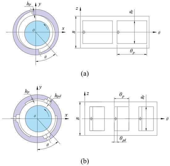 Configurations of the journal bearings: (a) TLB; (b) TSRB.