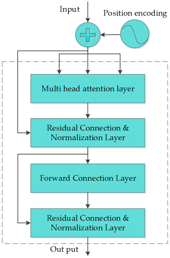 Based on the above analysis, we selectively identified these IMF signal components with the smallest index values as the most sensitive modal components. Subsequently, we systematically calculated nine statistical features, including the mean, variance, peak value, kurtosis, etc., for the optimal signal components screened under −2 dB and −7 dB noise interference conditions. To further explore feature information, this study also introduced a Transformer encoder to comprehensively and deeply analyze the complex correlations between data features and the long- and short-term dependencies in the time series.