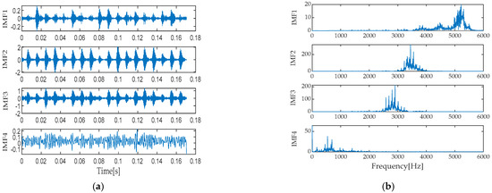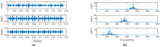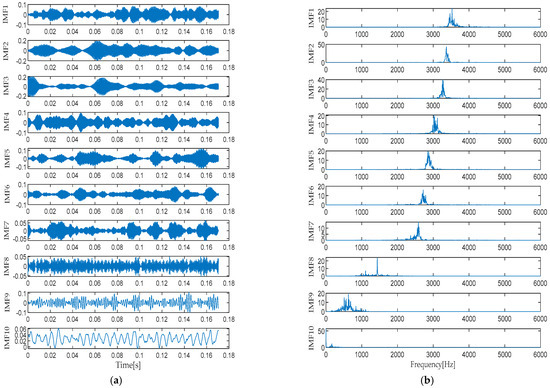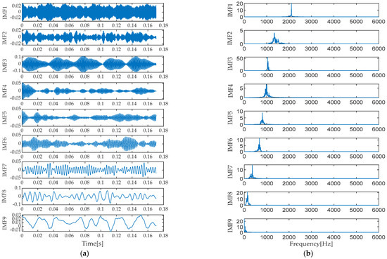Waveform (a) and spectrum (b) of VMD decomposition for normal operation.