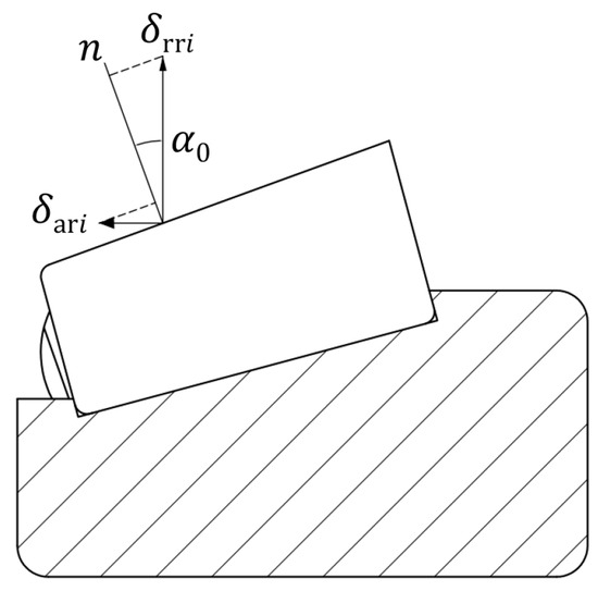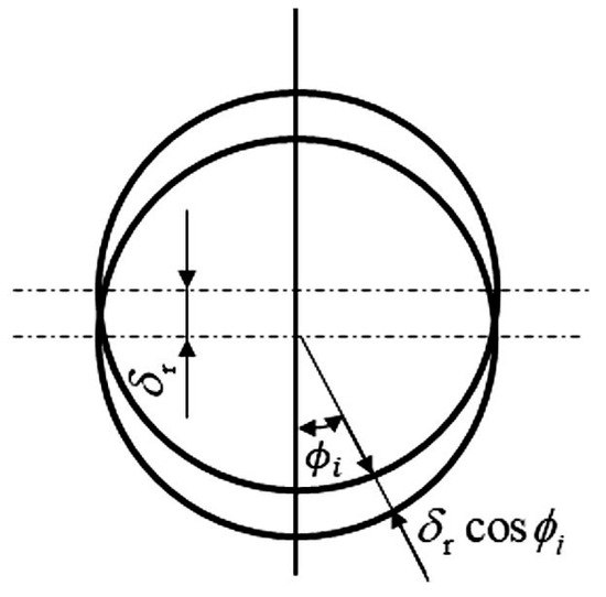 Under the action of the radial force , a relative radial deformation is generated between the inner and outer rings, as illustrated in Figure 3. The radial deformation component and axial deformation component of the i-th roller at the phase angle are expressed as: