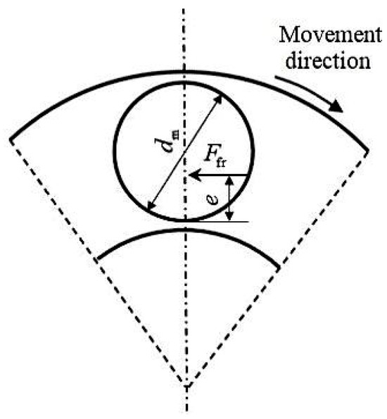 The rolling friction torque in a slice analysis essentially results from the deformation of the rolling element under force during the rolling process. It is a resistance moment generated due to the non-collinearity between the external force and the actual support force, as illustrated in Figure 7. The resistance torque at the slicing position of the roller can be expressed as: