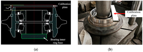 The preload displacement of the bearing is measured using an indirect measurement method, as shown in Figure 16. The distance between the calibration plate and the bearing inner race is measured, and the preload displacement is calculated. An electronic vernier caliper, with a precision of 0.01 mm, is used for distance measurement.