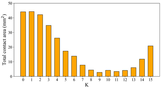 We employed three methods for representing the aggregated data. We use Equations (26)–(28) to calculate the maximum, minimum, and average values within each data cluster. We test the performance of each method on the average contact area. We also test the impact of the dimensions of unit designed surface on the average contact area. In these experiments, the unit designed surface is fully symmetric.