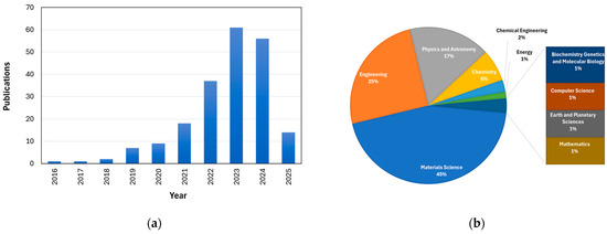 Quantitative studies associated with medium-entropy: (a) Publications related to medium-entropy in recent years; (b) distribution of studies by subject area [6].