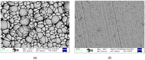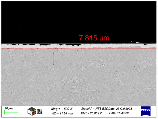 The thickness of the coatings was measured by ZEISS EVO MA10 scanning electron microscopy (SEM) of the cross-sections for the tested coatings (see Figure 1). The average coating thickness measured for the different types of coatings is shown in Table 3.
