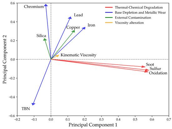 Principal component loadings for key lubricant degradation indicators.