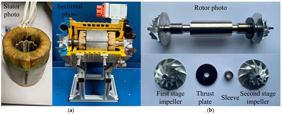 Figure 2. HFCVAC used for the test rig: (a) sectional photo; (b) rotor photo.