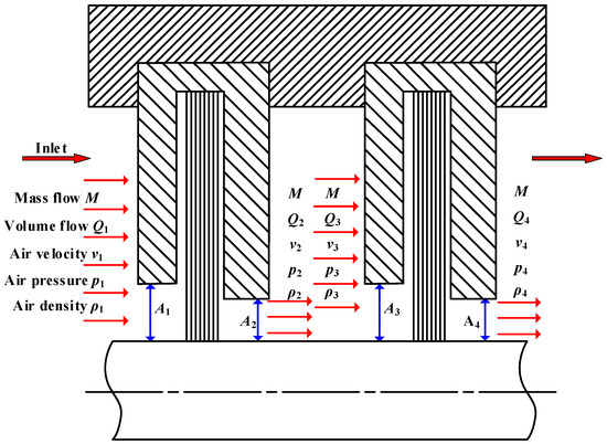 The structure of the CBS is shown in Figure 2. It is assumed that the air flows steadily, and the loss of the air viscosity and its own gravity are ignored. The pressure drop of a certain stage and the relationship between the mass flow rate and the volume flow rate of the air of the brush seal are as follows [18]: