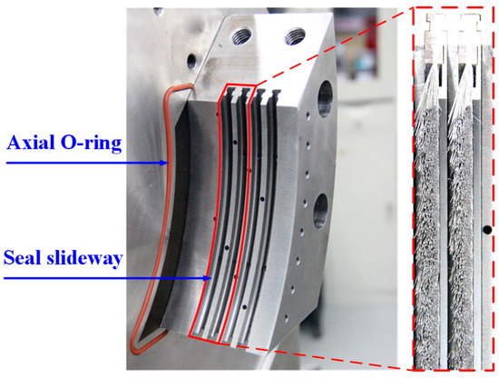 A brush seal is an advanced contacting dynamic seal, and its leakage is 10~20% of the traditional labyrinth seal [1,2,3,4]. The brush seal has a simple structure, low manufacturing cost and excellent sealing performance, so brush seals have important applications in turbine machinery such as aero-engines. With the continuous improvement of aero-engine performance parameters, the pressure-bearing capacity of the single-stage brush seal is limited, so the multi-stage brush seal is usually used in large-pressure-difference conditions [5,6,7].